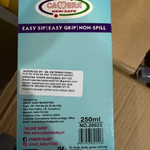 The Camera Natural Baby Sipper is designed to help your little one transition smoothly from breastfeeding to independent drinking. Made from BPA-free, food-grade material, it ensures total safety and hygiene. The soft silicone spout is gentle on baby’s gums, while the easy-grip handles make holding and sipping effortless. Its colorful and spill-proof design makes it perfect for everyday use, both at home and on the go.
