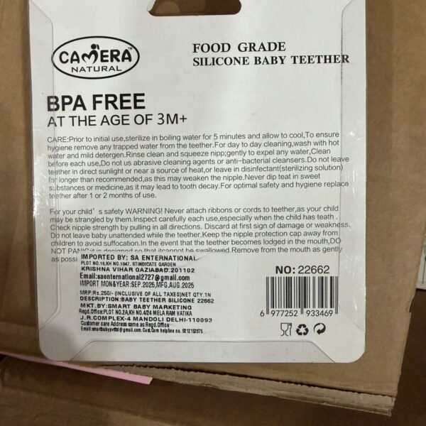 The Camera Baby Silicone Soother is designed to comfort and calm babies naturally. Made from high-quality, BPA-free silicone, it’s completely safe, soft, and gentle on your baby’s delicate gums. Its orthodontic shape supports healthy oral development while reducing discomfort during teething. The lightweight and durable design make it easy for babies to use, helping them feel secure and relaxed anytime, anywhere.