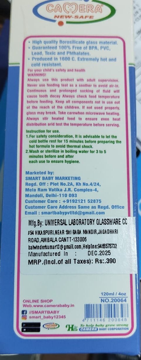 Give your little one the safest feeding experience with the Camera New Safe Glass Feeding Bottle, designed with care and love for growing babies. Crafted from premium quality, BPA-free borosilicate glass, this bottle ensures every feed is pure, hygienic, and free from harmful chemicals.
