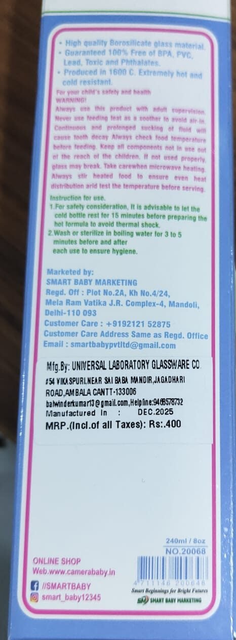 Give your little one the safest feeding experience with the Camera New Safe Glass Feeding Bottle, designed with care and love for growing babies. Crafted from premium quality, BPA-free borosilicate glass, this bottle ensures every feed is pure, hygienic, and free from harmful chemicals.
