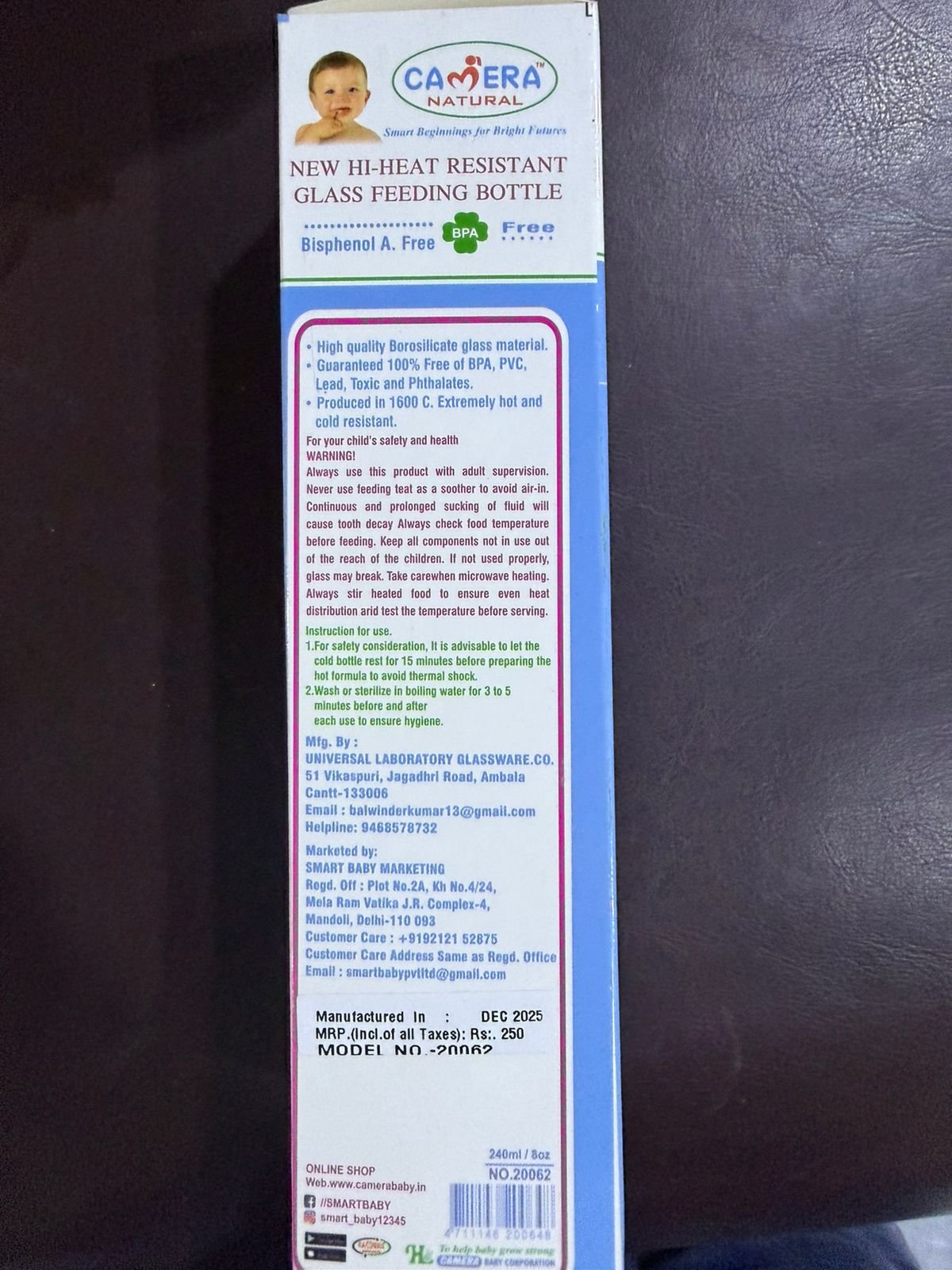 🍼 Camera Natural Glass Feeding Bottle – Safe, Pure & Gentle for Your Baby