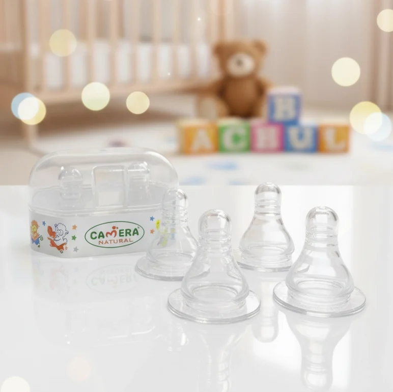Give your baby the most comfortable feeding experience with our Camera Brand Silicone Nipple 4-Pack. Designed to mimic a natural latch, this set ensures you always have the right flow rate on hand to adapt to your baby’s growing needs, all while minimizing fussiness and gas.